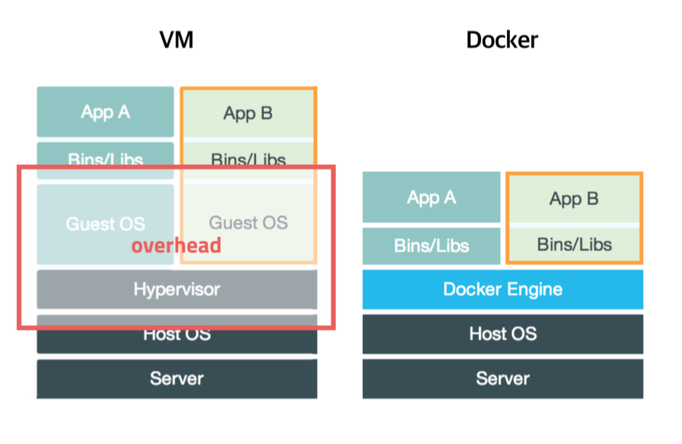 도커를 사용하면 운영체제가 실제로 컴퓨터 호스트에 설치되지 않고 독립된 환경에서 돌아가기 때문에, 가상머신과 비교 시 메모리 점유율, 성능면에서 이점이 있다.
