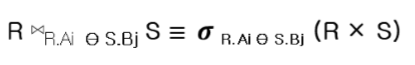 - 두개의 릴레이션 R,S가 있을때 조인조건은 R.A⊙S.B 형태로 주어지며, ⊙는 {=,>,<,>≥,≤} 중 하나이다.