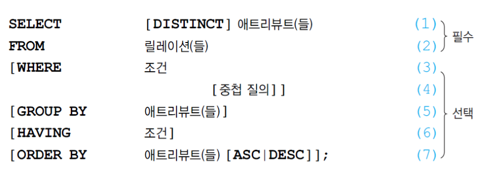 SELECT절과 FROM절만 필수이고 나머지는 선택사항이다.