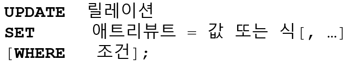 기존의 릴레이션에 애트리뷰트 값을 수정