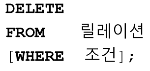 기존의 릴레이션으로부터 한개 이상의 튜플을 삭제